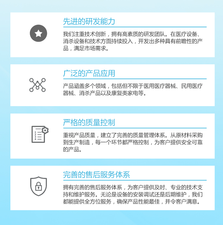 家佑(江苏)医疗科技有限公司坐落于江苏省徐州市高新技术产业开发区,是一家专注于民用医疗器械、医用医疗器械、消杀类、康复家电类等产品的研发、设计、生产及其服务的高科技公司。